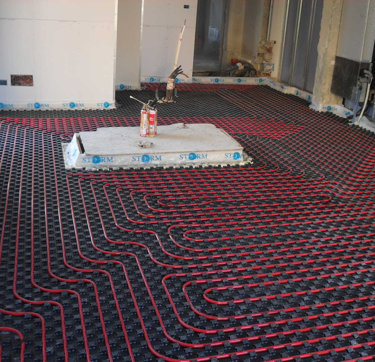 Installazione di un sistema di riscaldamento a pavimento Rehau.