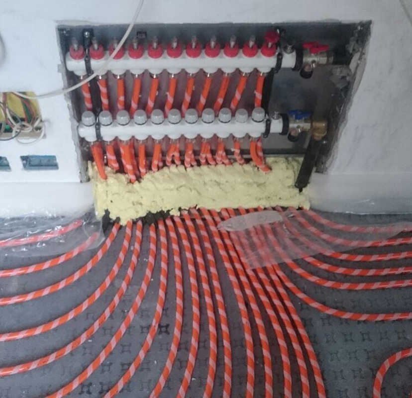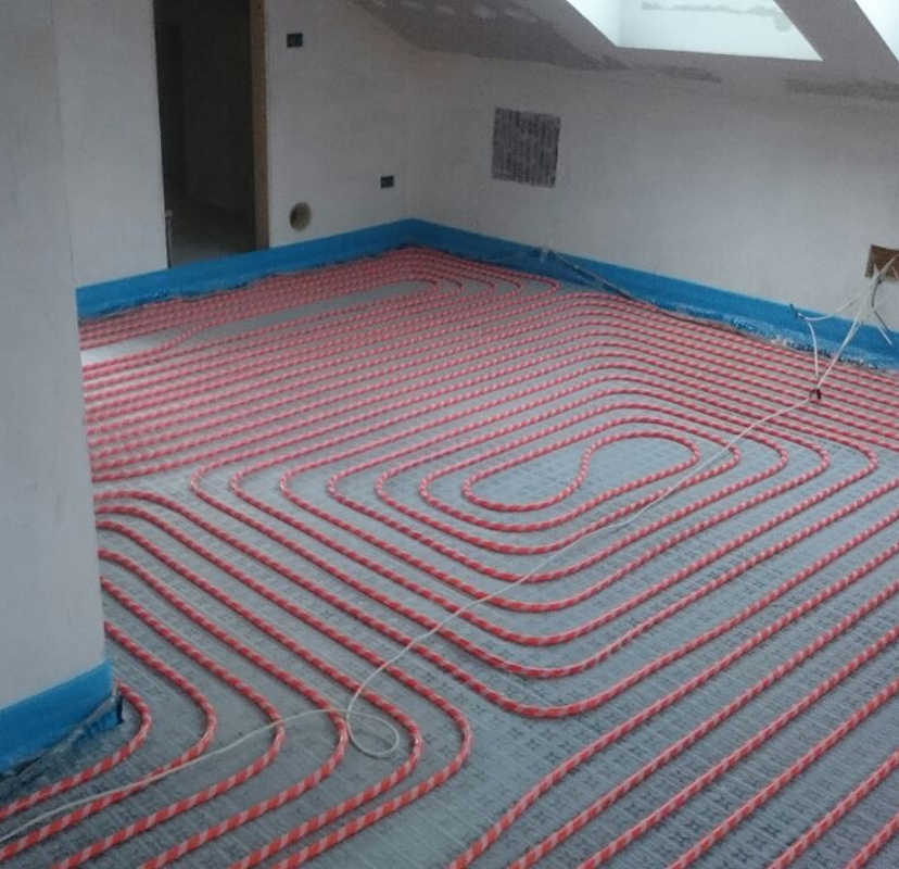 Installazione di un sistema di riscaldamento a pavimento Rehau Rautherm Speed Plus.